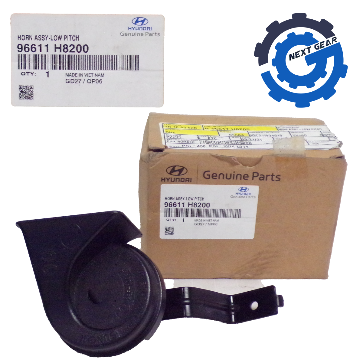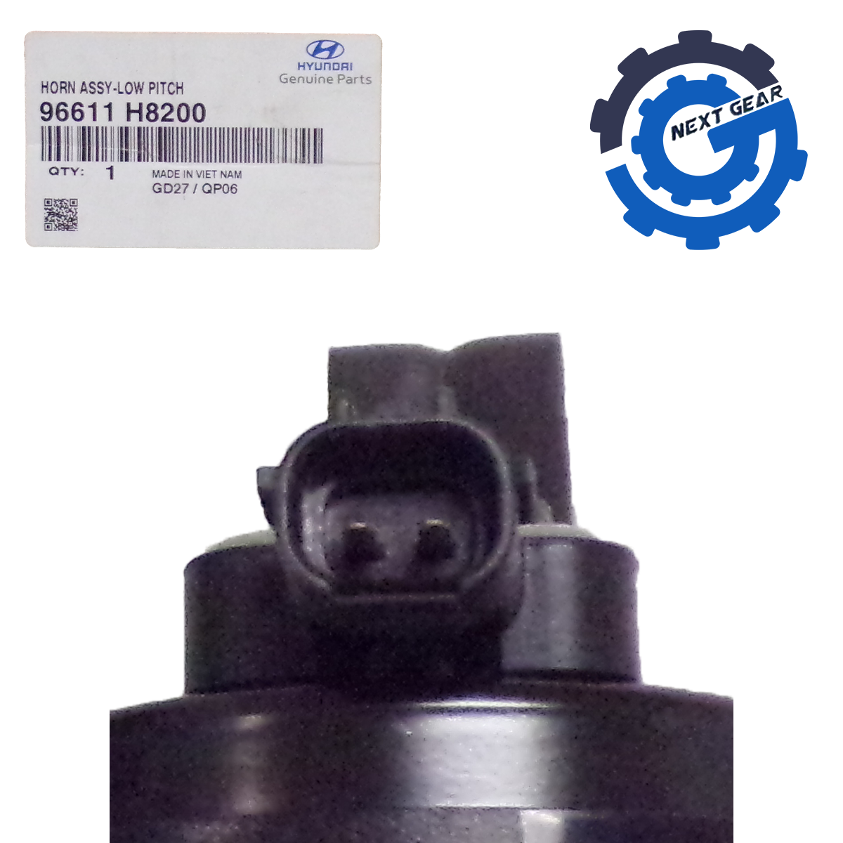 This is an Original New OEM Hyundai Low Pitch Horn Assembly 2018-2022 Accent Kia Rio 96611H8200